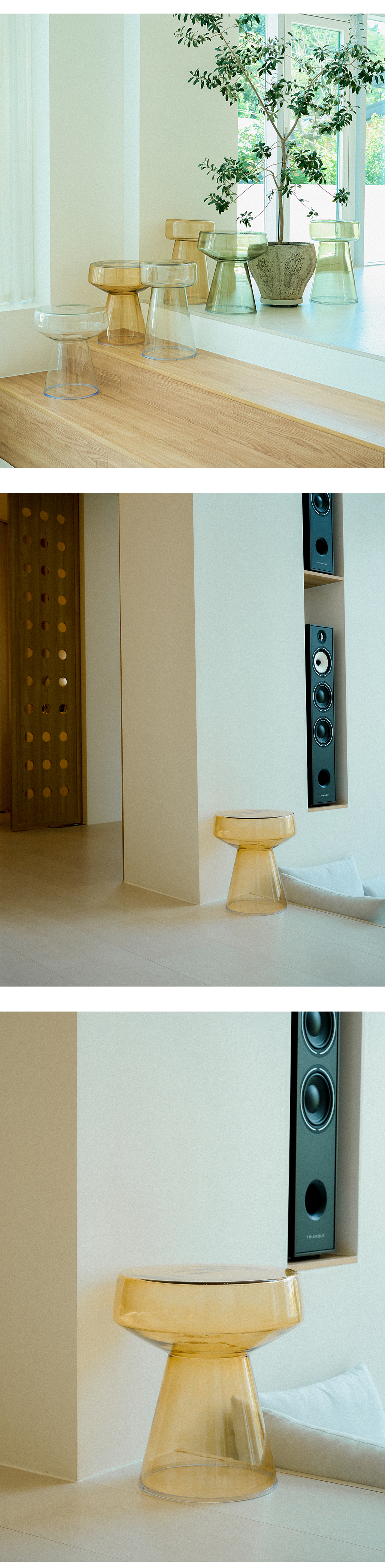유리 사이드 테이블은 투명하고 맑은 유리로 제작되어,