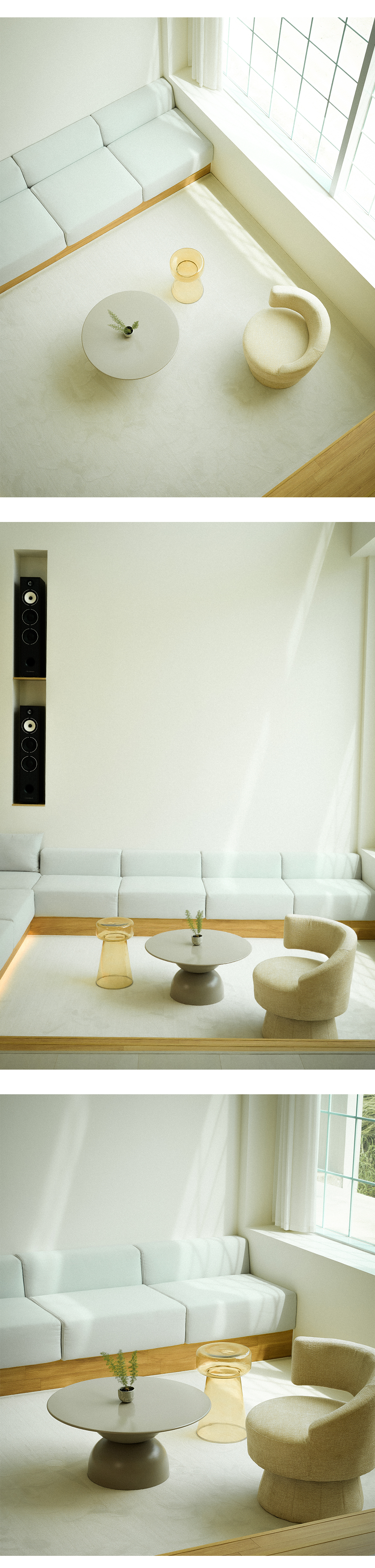 오빗(Orbit) 커피 테이블은 매끄럽고 둥근 실루엣으로