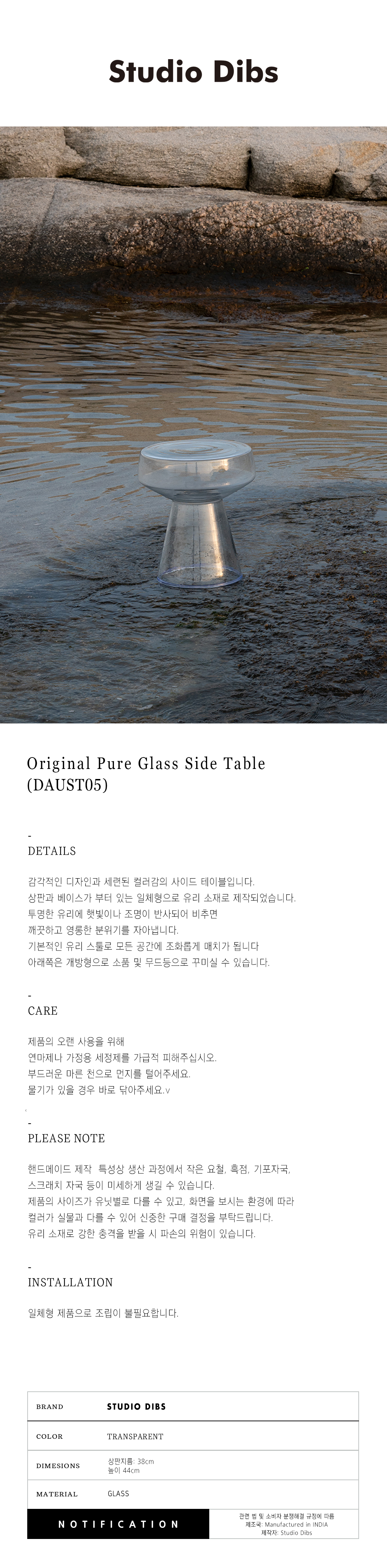 유리 사이드 테이블은 투명하고 맑은 유리로 제작되어,