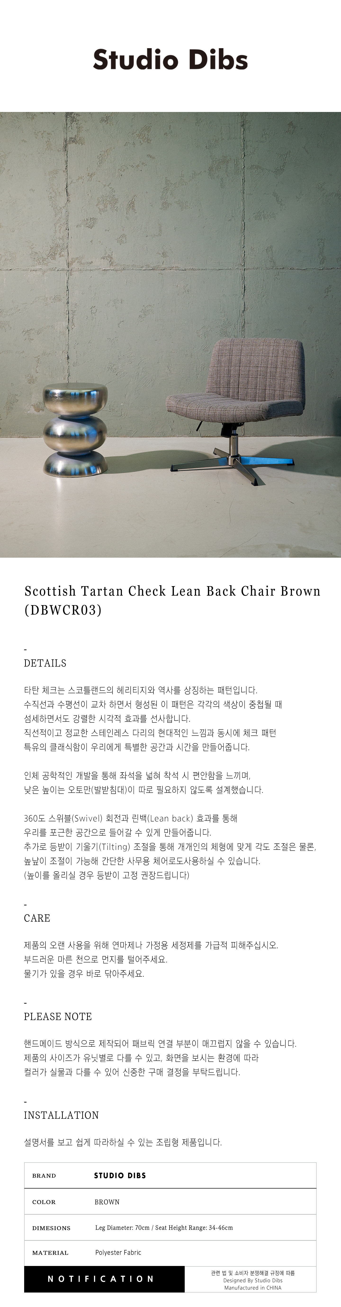 Scottish Tartan Check Pattern Lean Back Chair Brown (DBWCR03)