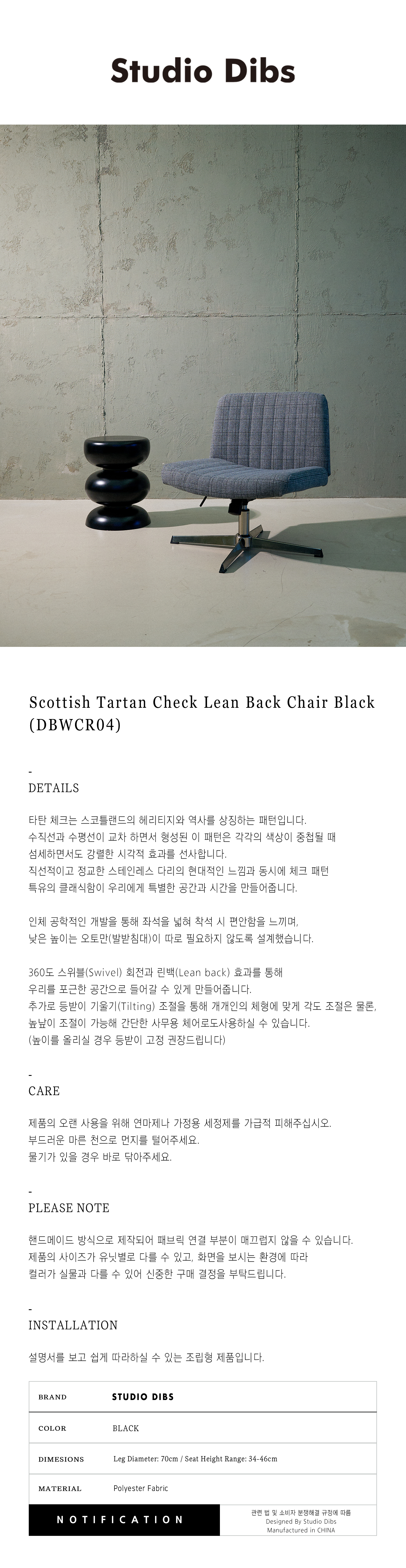 Scottish Tartan Check Pattern Lean Back Chair Light Black (DBWCR04)