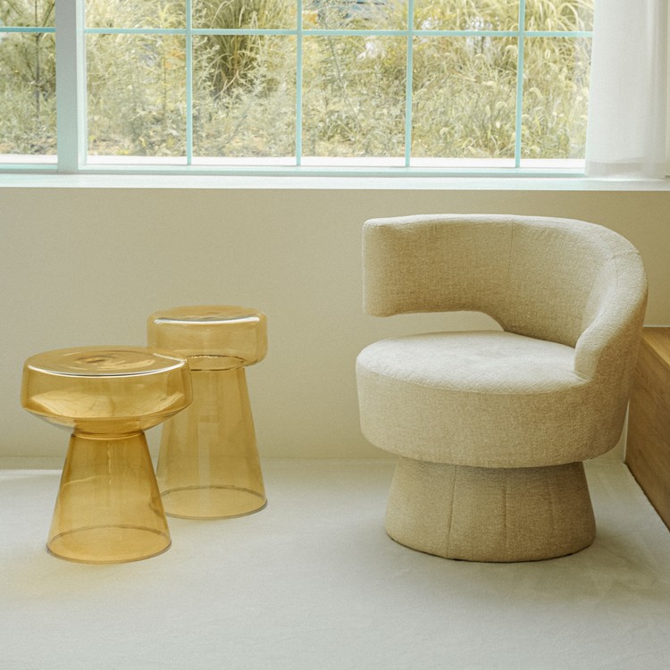 유리 사이드 테이블은 투명하고 맑은 유리로 제작되어,